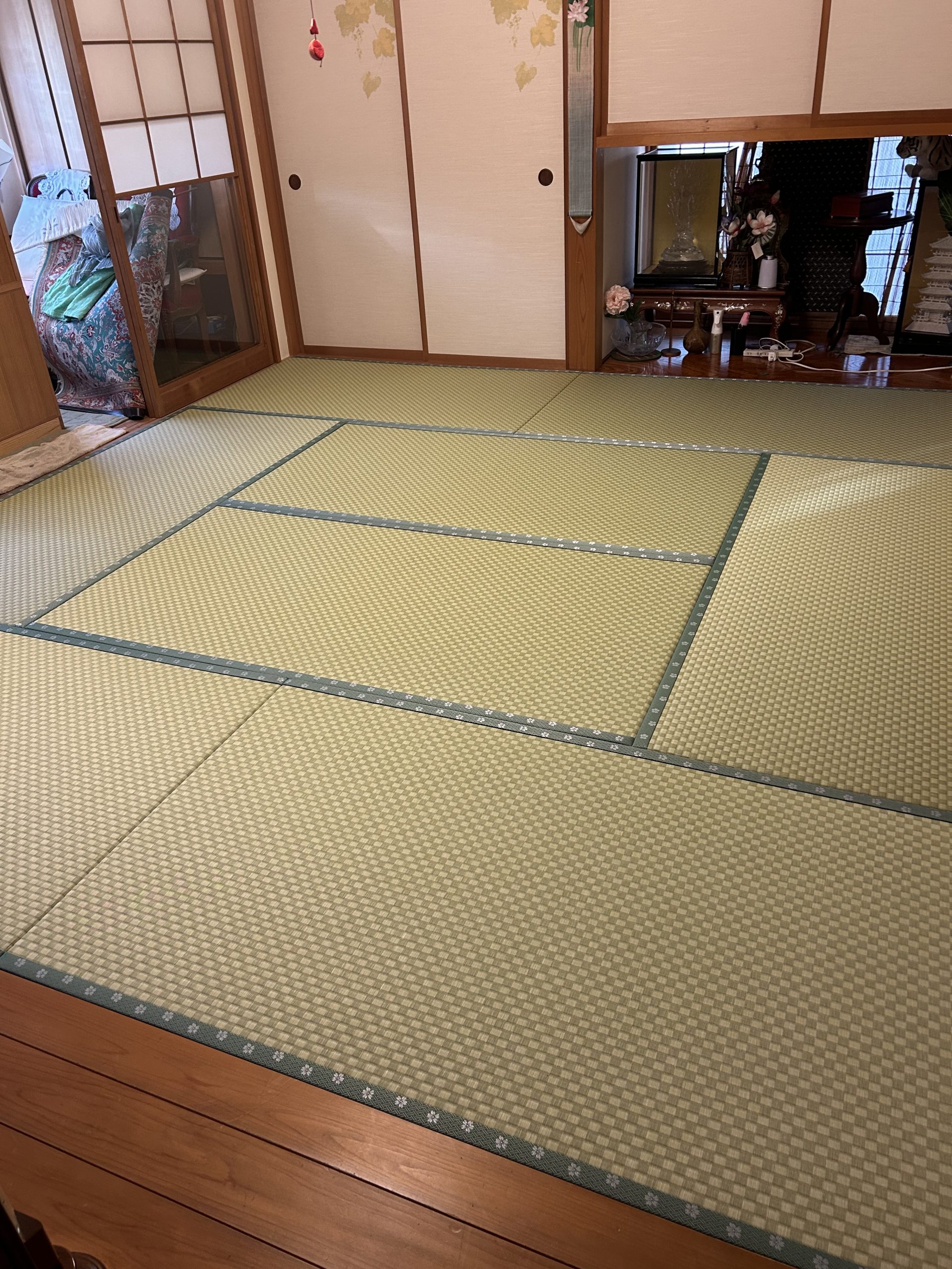 ダイケン工業様からの依頼 畳表 市松表グリーン 縁 花香りの7 表替えです